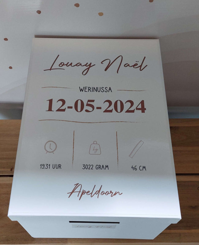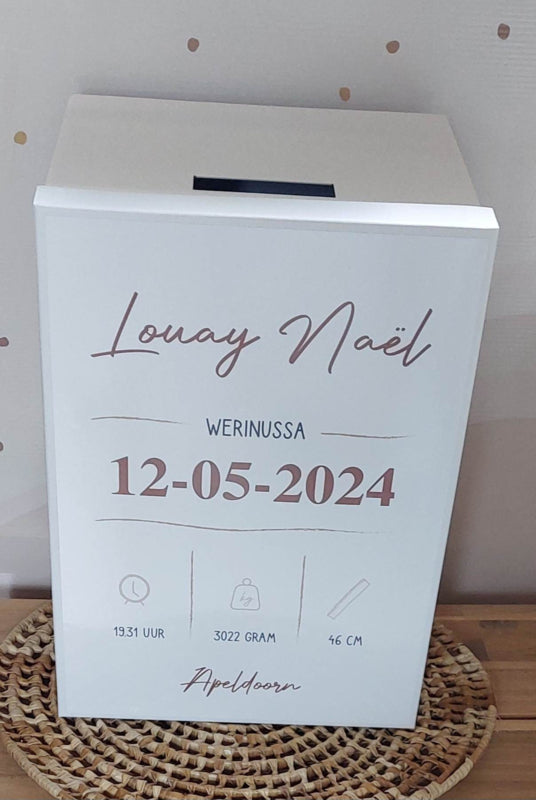 Leuke geboortedoos met de naam van het kindje.