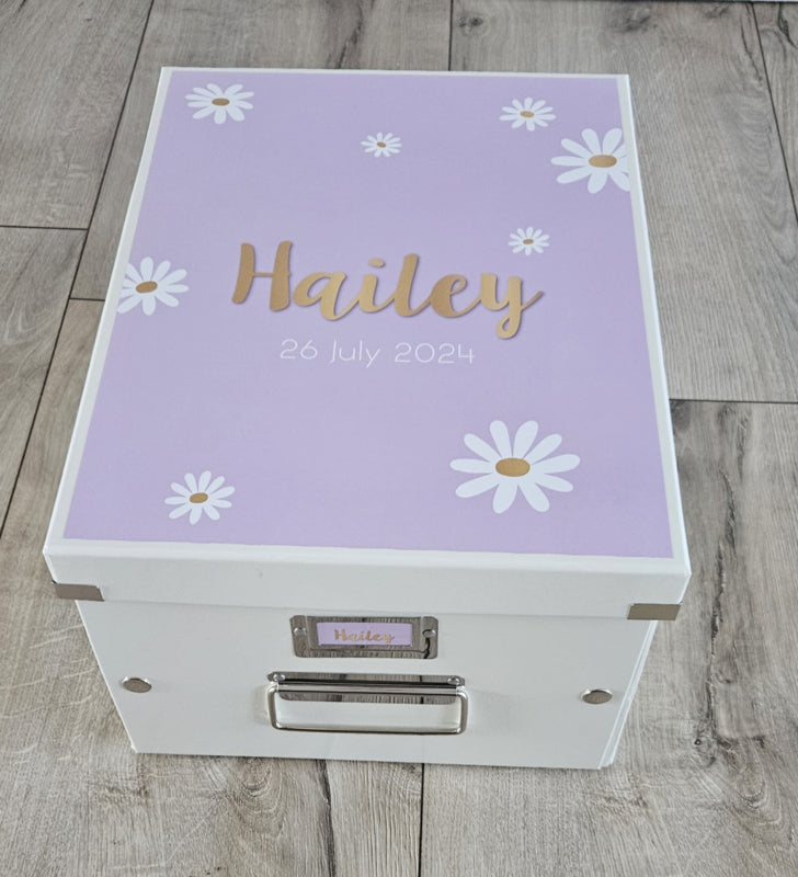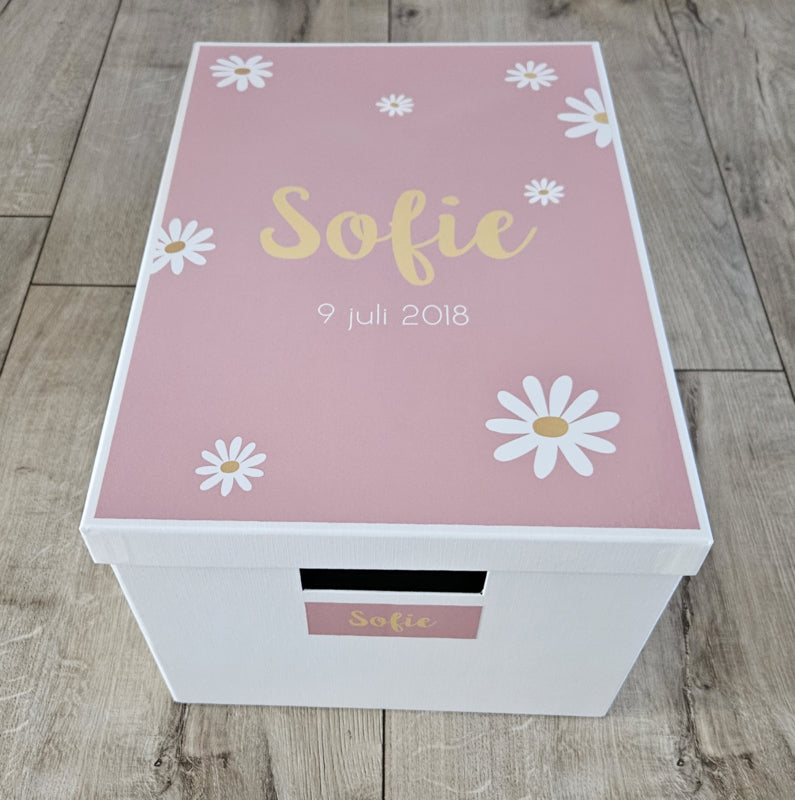 Bewaardoos met naam Madeliefjes div. kleuren