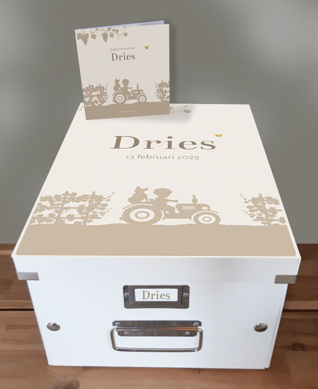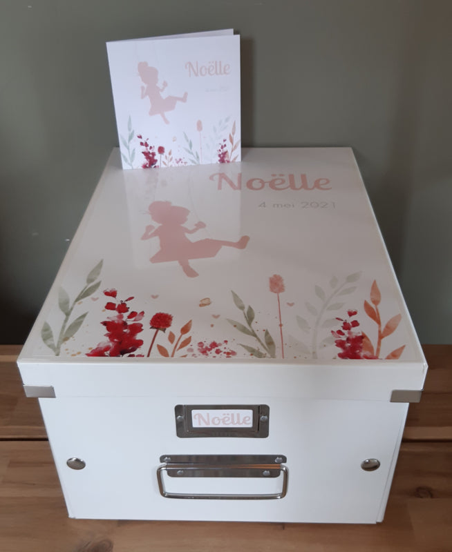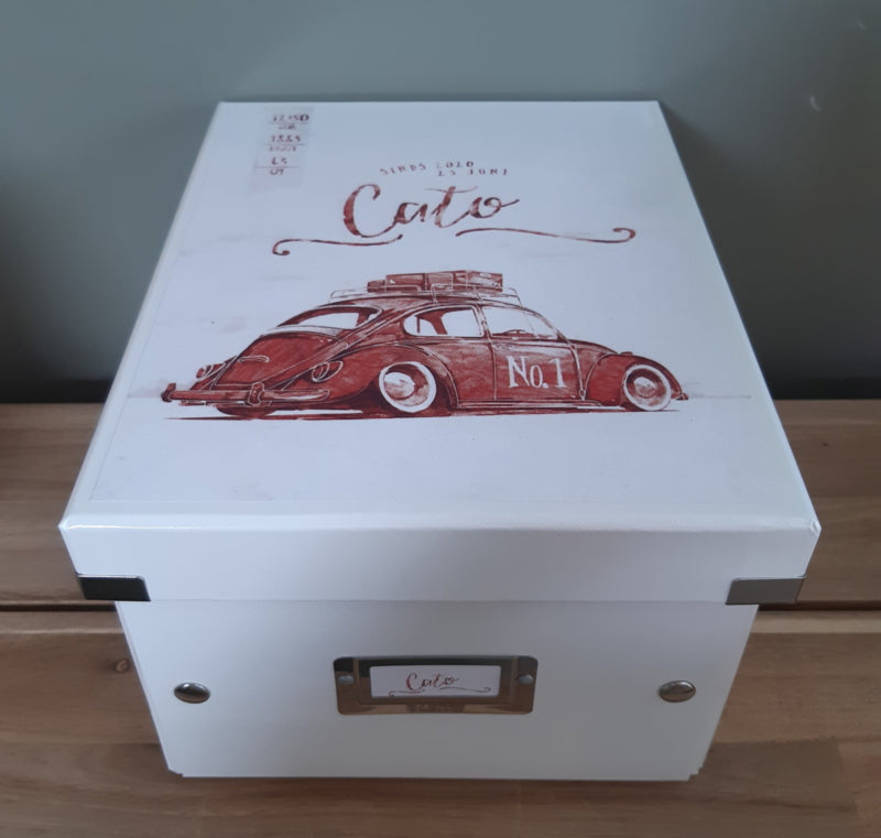 Mooie geboortedoos/bewaardoos met naam gemaakt van het geboortekaartje.