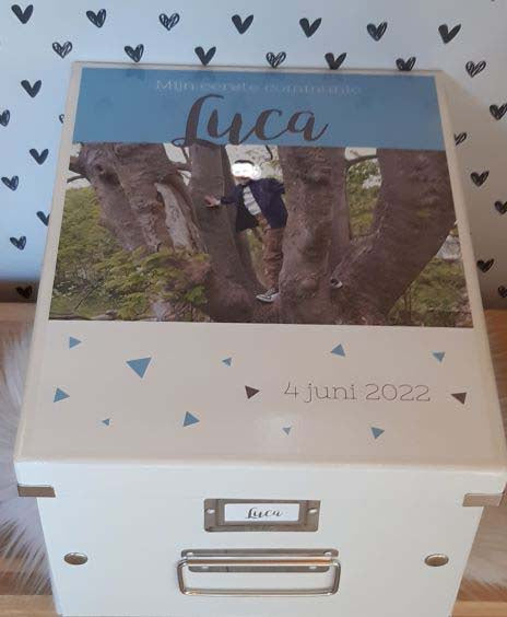 Leuke communie bewaardoos met naam voor de 1e H. Communie ter herinnering.