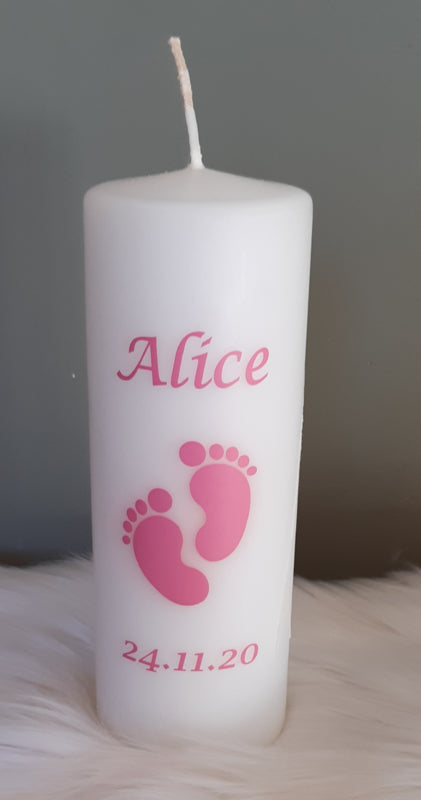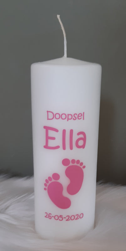Doop- of geboortekaars met naam voetjes meisje