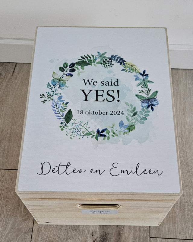 De tekst ' We said YES! ' staat er standaard bij.