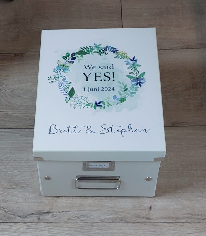 tags: bewaardoos huwelijk, herinneringendoos , opbergbox huwelijkscadeaus, cadeau bruiloft