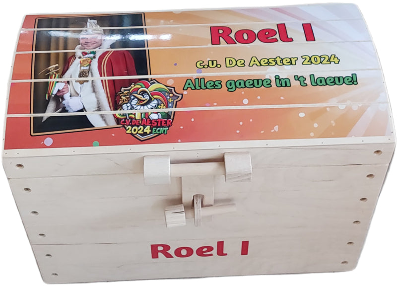 Wat is er nou leuker dan een opbergkist met de foto van de Prins, Prinses, Prinsenpaar, Adjudant of Ceremoniemeester!