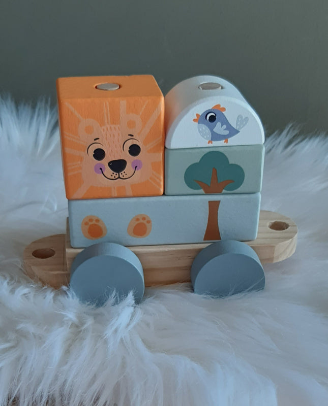 Houten trein en dieren ''Zilver'' (met naam)