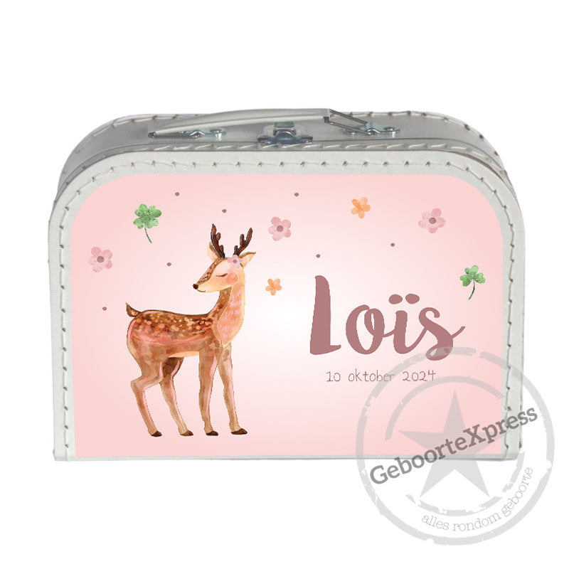 koffertje met naam, schattig hertje en knuffelhert van Little Dutch
