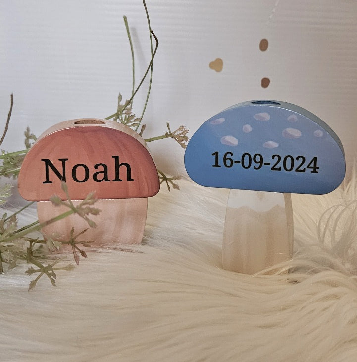 De naam en eventueel datum worden in het hout met een laser gegraveerd.
