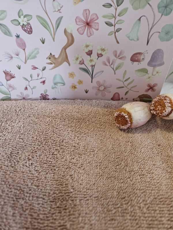 De binnenkant en buitenkant is bedrukt met een mooie print van bloemetjes en bosfiguren.