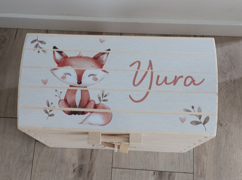 Deze kist met een schattig vosje is in een gehele sticker print.