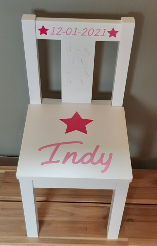 TAGS: Geboortestoeltje, stoel met naam, kraamkado, geboorte stoel, eigen naam op stoel, kraamkado met naam