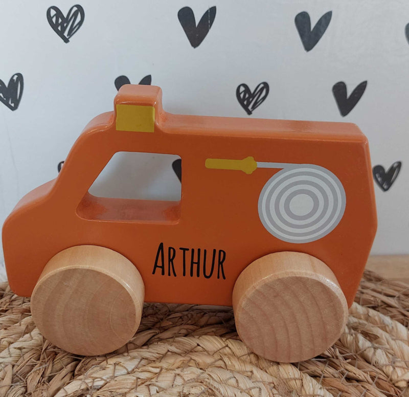 T√°√°aatuu, met deze houten speelgoed brandweerauto van Tryco zal je kleine flink rond racen!